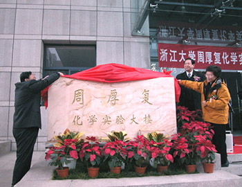 今天,在纪念我的父亲周厚复先生一百周年诞辰的日子里,浙江大学特地举行隆重的“周厚复化学大楼”的奠基典礼,我作为周厚复先生的子女和亲属的代表,要向浙江省委、省政府和省侨办的各位领导,向浙江大学的各位领导、各位老师表示最衷心的感谢。